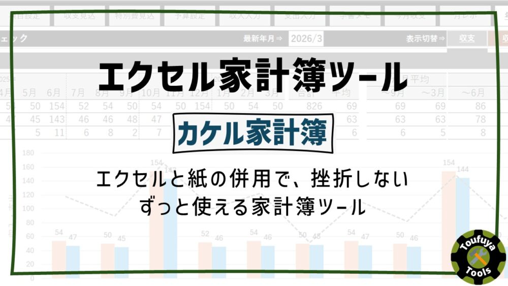 トーフヤツールズ Excelを使った家計簿や日常に役立つツールを紹介。数字を見える化して、暮らしを少し便利にするシートをご紹介しています。