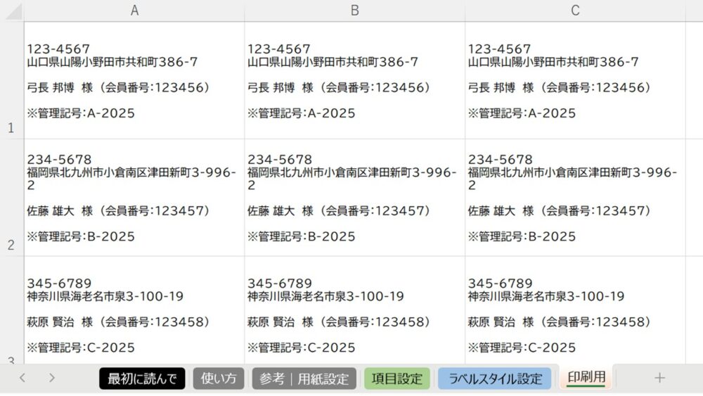 エクセルだけで宛名ラベルを作成|マクロも差し込み印刷も不要